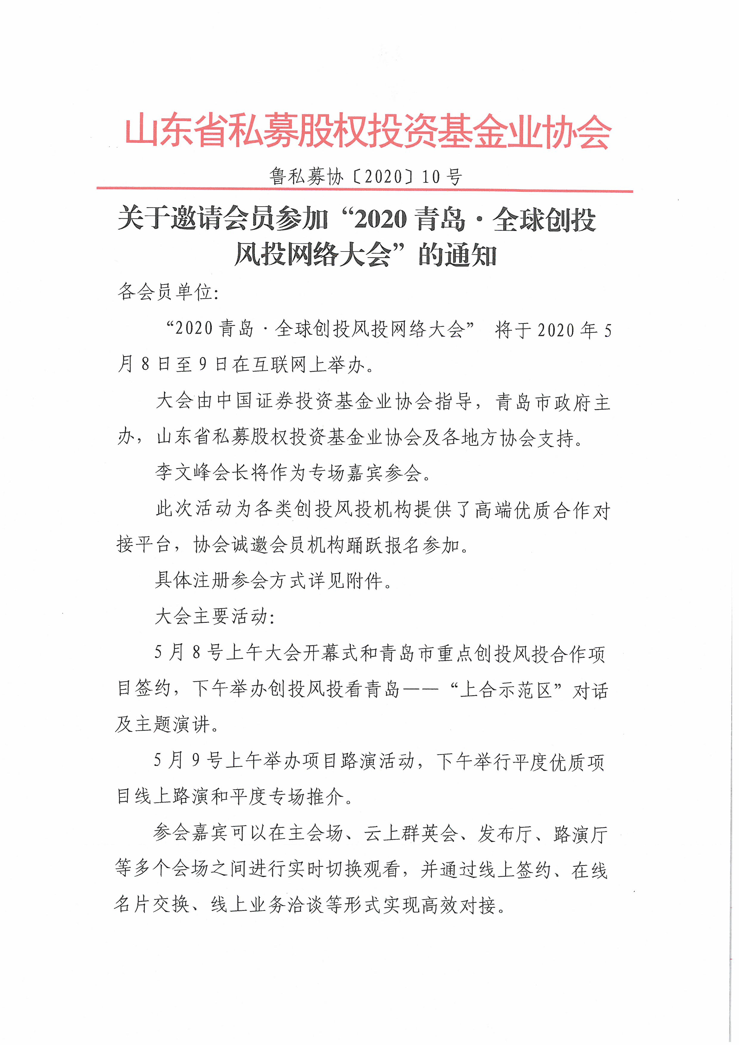 2020青岛全球创投风投大会参会通知